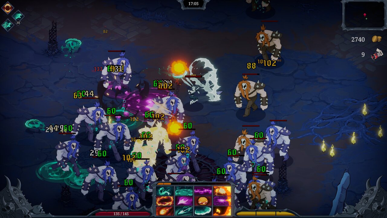 Las partidas se desarrollan en un infierno dibujado a mano, repleto de hordas demoníacas y pequeños incentivos que nos empujan a movernos. Cajas con oro, objetos curativos o imanes para atraer experiencia se combinan con puntos de interés que ofrecen mejoras temporales o permanentes, como aumentos de vida o bonus de daño. Este diseño mantiene la exploración viva y recompensa la movilidad, un aspecto que muchos títulos del género descuidan.