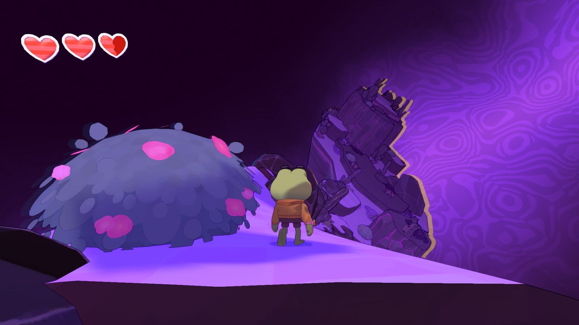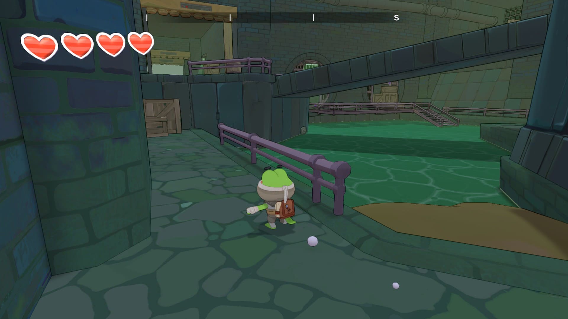 Pero quizás el elemento más definitorio del juego es el uso de la lengua. Como buena rana que somos, nuestra lengua será nuestra principal herramienta multiusos: Desde activar interruptores a distancia, recoger objetos, abrir cerraduras o usarla como gancho para balancearnos, la lengua integra la acción y el pensamiento. Es una mecánica que sorprende mucho por su versatilidad y la variedad de situaciones es digna de elogio.