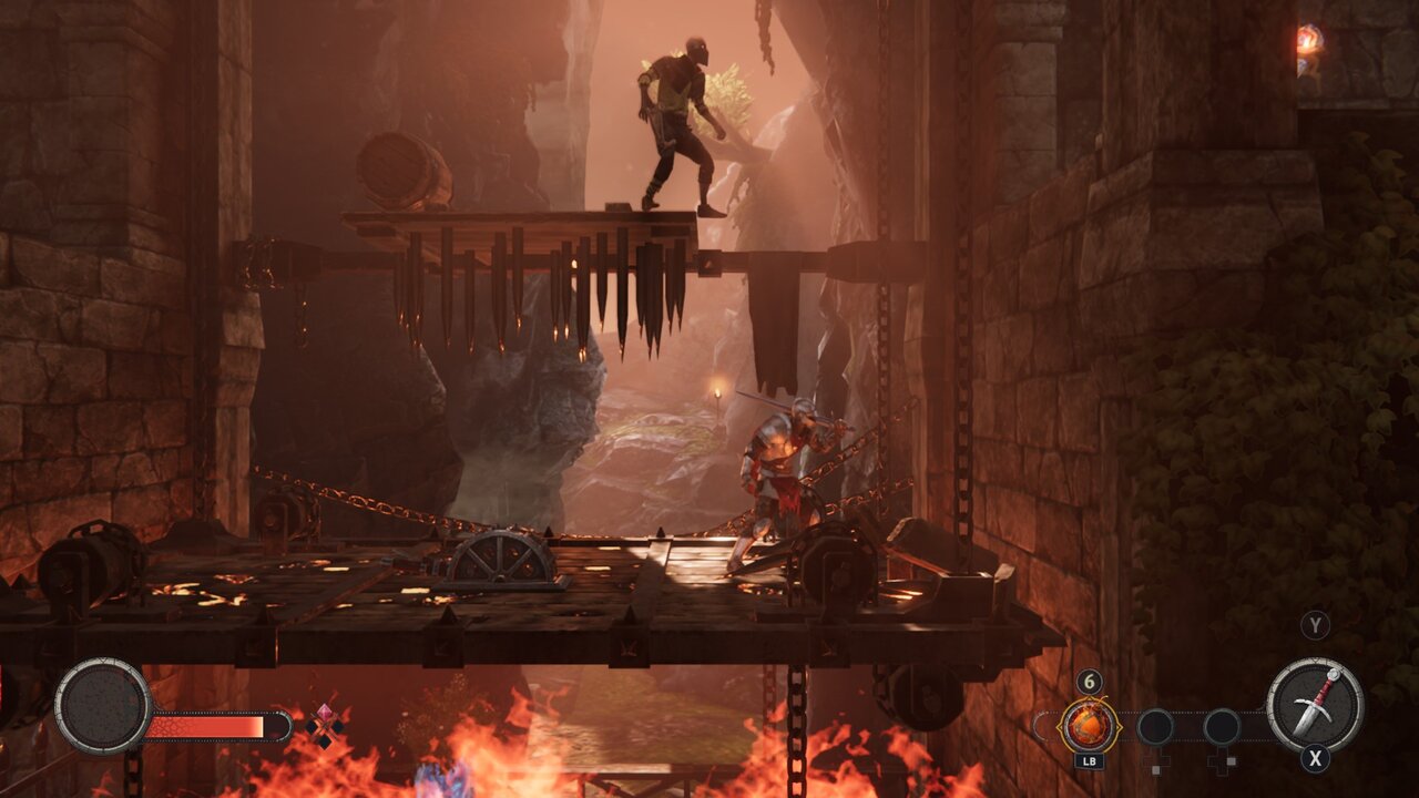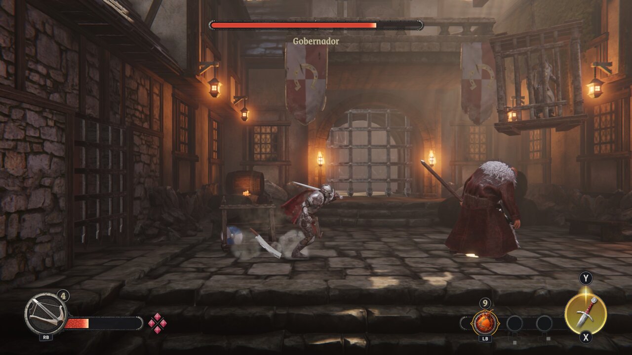 Uno de los puntos más flojos sigue siendo el combate. Aunque el estudio ha pulido ciertas animaciones respecto a la versión de 2018, el sistema de lucha continúa sintiéndose torpe y frustrante. Los enemigos normales funcionan como auténticas esponjas de daño: tras completar un combo entero, caen al suelo pero se levantan casi de inmediato, alargando encuentros que deberían ser ágiles. Esto se ve agravado por la poca movilidad del caballero, lo que convierte cada enfrentamiento en un proceso tedioso. Los jefes finales llevan este problema al extremo. Llegar a ellos con poca vida es habitual, y derrotarlos requiere ejecutar un combate casi perfecto, sin margen para errores. La sensación puede resultar más frustrante que desafiante, aunque en los momentos en que el control responde bien, los combates logran cierta tensión y ritmo.
