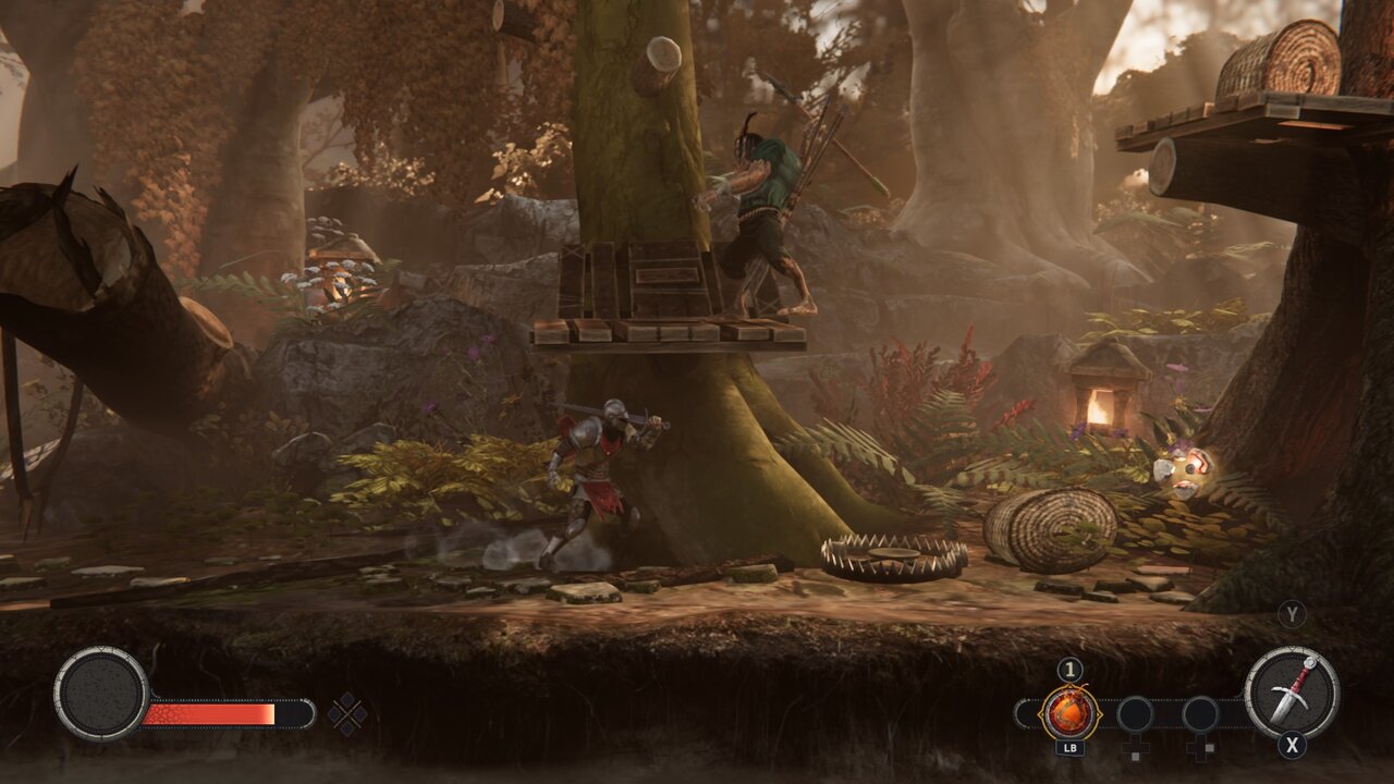 El título ha añadido nuevas herramientas: ahora el protagonista dispone, además del ataque básico, de habilidades especiales como un barrido en área y bombas que dañan a enemigos cercanos. También se introducen armas secundarias -hachuelas, mazas, ballestas o jabalinas-, pensadas para lidiar con enemigos a distancia o voladores. Estas incorporaciones aportan algo más de variedad, aunque no terminan de cambiar sustancialmente la experiencia.
