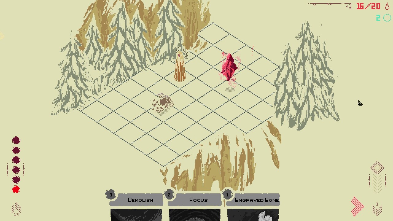 Una vez nos encontramos con los primeros espíritus, veremos cómo funciona el combate. Unos pocos puntos de acción que debemos de repartir entre movimiento y cartas. Casi siempre mendigaremos puntos de acción, y este es uno de los grandes logros del juego. La economía de acciones es importantísima, y sufriremos en consecuencia. Muchas veces nos veremos superados por los combates, y tendremos que repetir más de uno para poder avanzar.