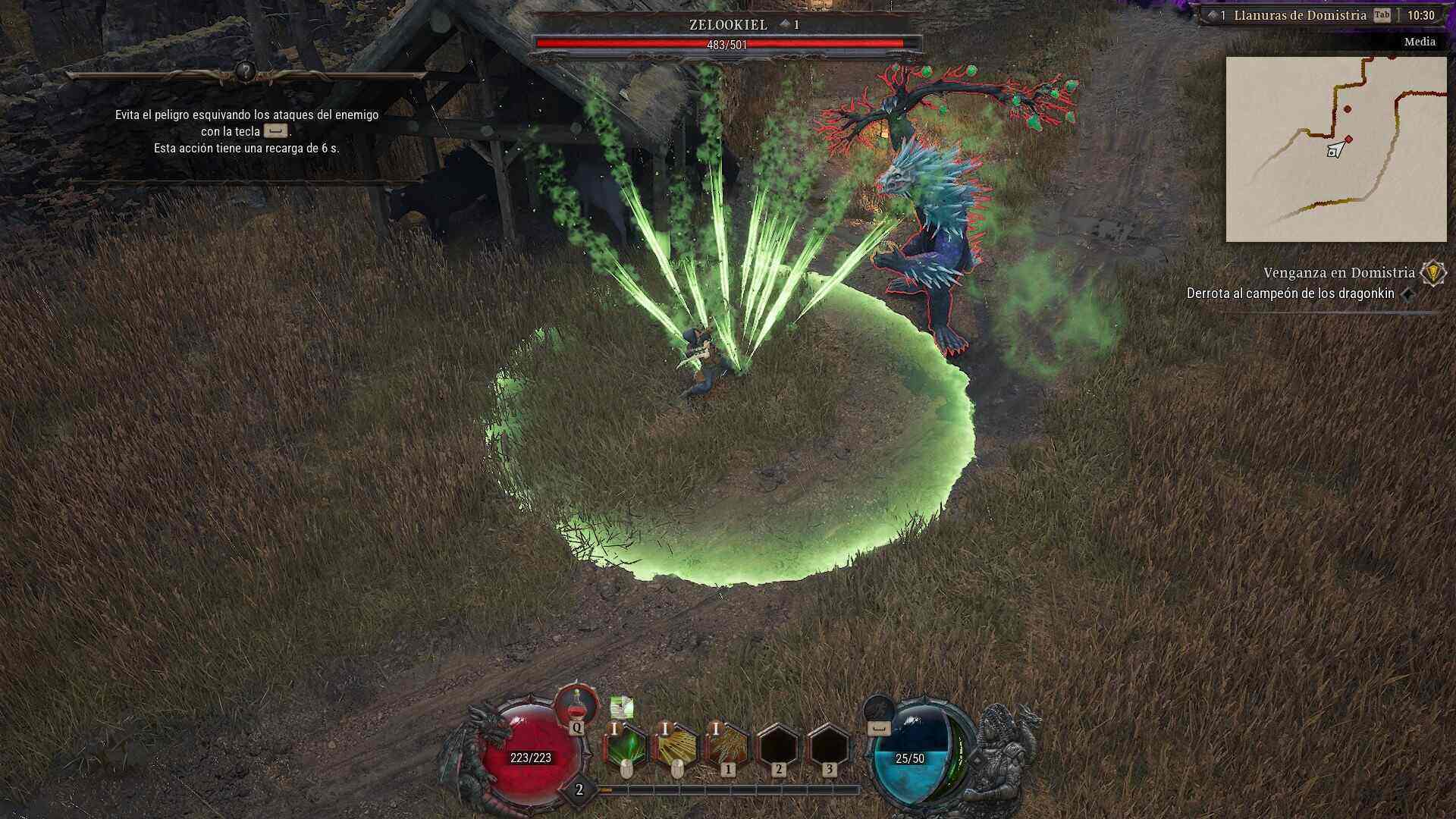 Por fortuna, una vez tienes tu build ajustada a tu gusto y estilo de juego, y mientras vas jugando con el desarrollo de habilidades, el combate funciona. Es ágil, responde bien y mantiene ese flujo constante que se espera del género. Aquí, Dragonkin no se ha arriesgado y ha ido a lo que ya conocemos. El combate es satisfactorio y todo depende de cómo te equipes y desarrolles a tus personajes. Aunque hay que reconocer que hay habilidades que dan la impresión de estar algo rotas, tras un año de pulido y feedback, seguramente se trata de algo intencional más que de un fallo de balanceo.
