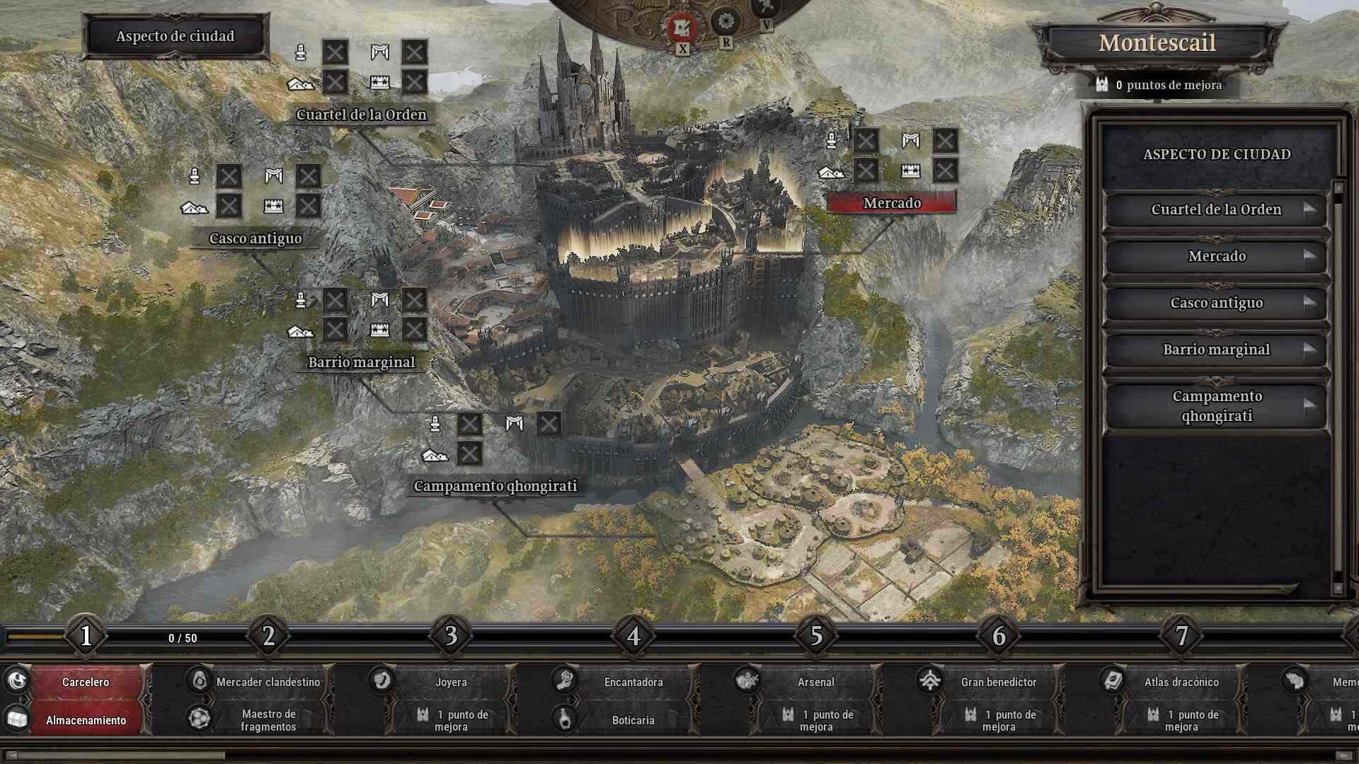 Centrándonos en Montescail, funciona como ese intento de dar cohesión al conjunto. El hub evoluciona, desbloquea opciones y crece contigo. Visualmente incluso cambia, lo que refuerza la sensación de progreso. Ahora bien, hay que tener en cuenta que no hay una gestión real del espacio o de recursos, sino más bien elecciones de mejora. Pero logra su objetivo de hacer que el progreso no sea un mero número sino trasladarlo a algo más visual y “tangible”.