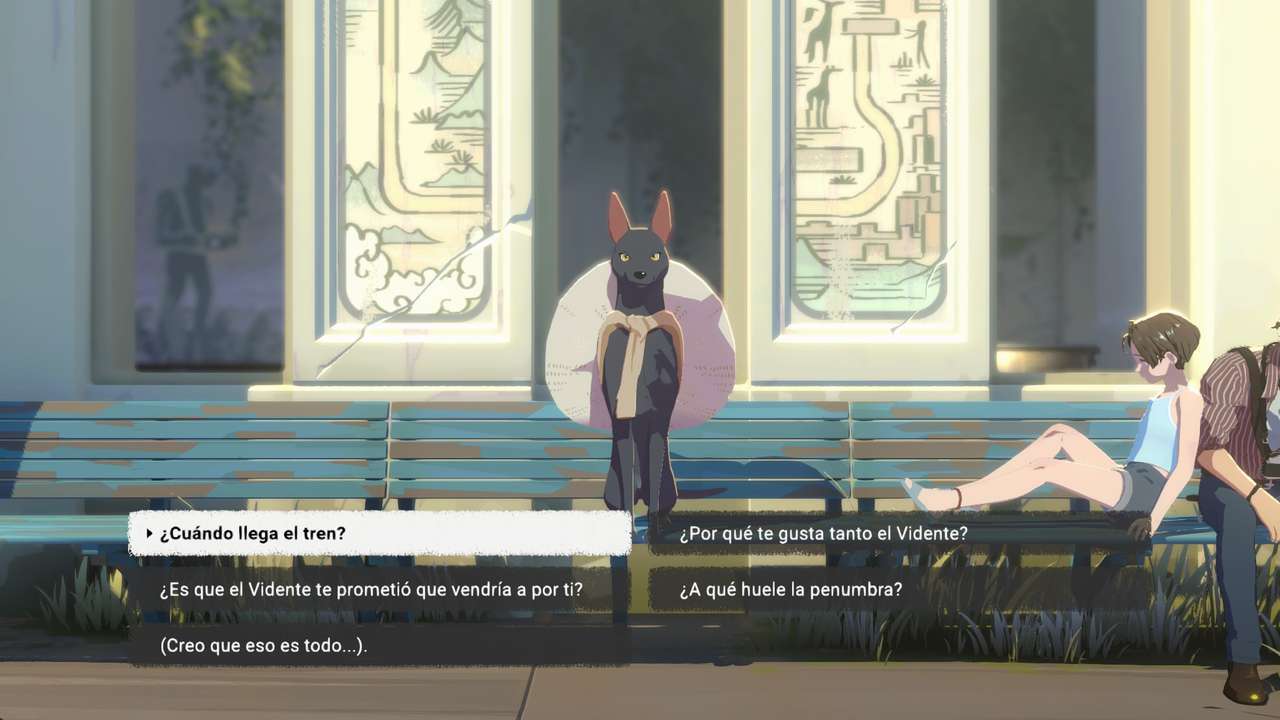 Llevamos un diario de viaje donde se acumula información y también distintos puzles que iremos desarrollando tanto con las fotos, como con investigación. El juego hasta propone decodificar un alfabeto, a la usanza de juegos como Chants of Sheenar o Heavent’s Vault, que podremos completar con ‘fuerza bruta’ -gastamos carboncillo al escribir y probar cosas en el cuaderno-, como con investigación en los entornos y deducción. Y eso hay también en otros apartados como los murales, o las crecientes relaciones con los espíritus, a la hora de completar sus pensamientos en forma de textos.