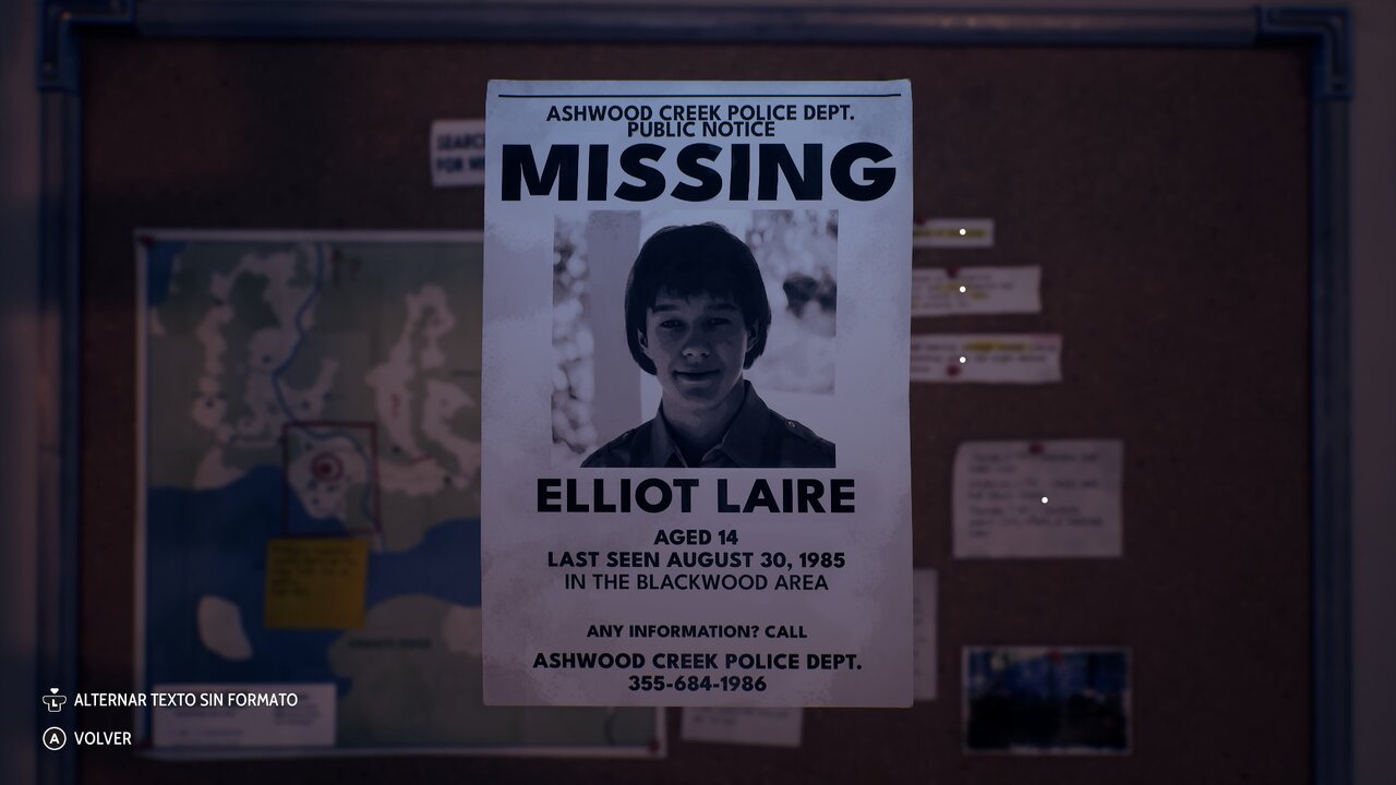 Os pongo en situación. Nos encontramos en el año 1985, donde nos ponemos en la piel de Ethan, un oficial de policía encargado de encontrar a un guarda del parque nacional de Ashwood Creek. Pero hay más: cuatro días antes, en ese mismo parque, había desaparecido un joven Boy Scout llamado Elliot Laire. Ethan se adentrará en las profundidades del bosque, donde no todo es lo que parece. Por suerte, al igual que ocurre en Firewatch, aquí tendremos un walkie-talkie con el que podremos comunicarnos con Robert, un viejo amigo y jefe de policía de nuestra ciudad. Juntos deberán ir encontrando pistas y desentrañar el misterio para descubrir la verdad. La narrativa es acertada y, con su trama misteriosa, logra enganchar desde el primer momento. De hecho, el juego comienza en la casa de Ethan, permitiendo al jugador empatizar con él desde lo cotidiano. Este inicio nos deja ver cómo protege a su familia, y gracias a los diálogos con Robert iremos conociendo detalles del pasado del protagonista.