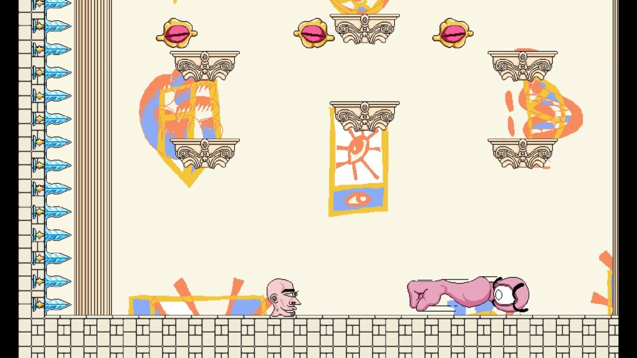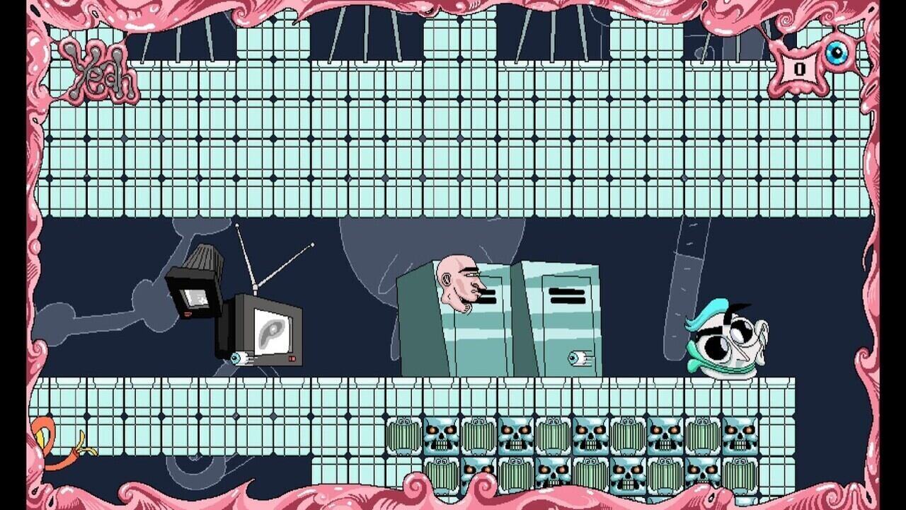 De todas formas, hay que tener mucho cuidado con los gritos, ya que si nos pasamos la cabeza explotará y tendremos que empezar de nuevo. Gritar sirve también para una cosa muy importante: Screaming Head no es un juego fácil, y algunos niveles pueden ser largos y complicados, sin puntos de control ni guardado; así que, cuando estamos a punto de pasarnos una zona y morimos, pulsar el botón de gritar nos servirá para no tener que hacerlo en la vida real. Esto puede sonar a anécdota, pero es una cosa que he usado bastante mientras jugaba. Ayuda a controlar la ira.