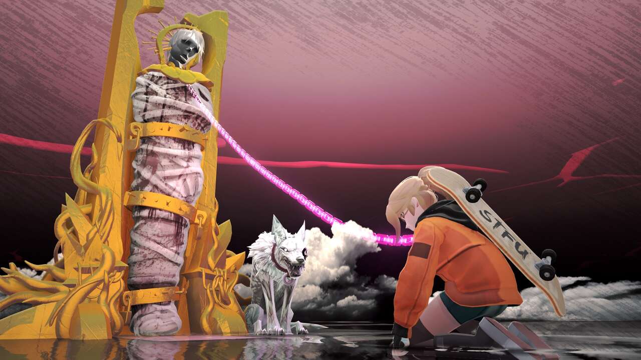 Silly Polly Beast no es un juego muy largo, sobre las diez horas, quizás menos, pero si enormemente desafiante. He hablado de top-down shooter, survival y souls, y los momentos de acción que proponen pueden ser tan sofocantes como satisfactorios. Cogedlo un poco con pinzas, porque no es un Hotline Miami, pero tampoco un shooter más clemente, hay que plantear las cosas con orden y concierto. Encima, tenemos una barra de «stamina» que nos permite golpear con nuestro… monopatín, o «patineta» en la lograda traducción española con algún deje latino simpático.