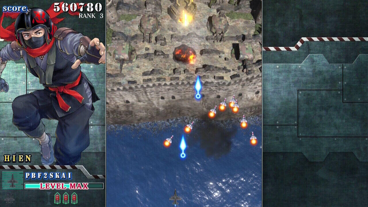 El modo cooperativo local es especialmente atractivo, permitiendo que dos jugadores compartan la pantalla y coordinen ataques, lo que no solo aumenta la diversión, sino que también altera ligeramente el comportamiento de los enemigos y la colocación de ítems. En caso de jugar solos también podremos elegir un «wingman» para que nos ayude cuando lo requiramos con sus bombas. A nivel de dificultad, el juego ofrece varios niveles ajustables, desde un modo más fácil para iniciarse hasta desafíos técnicos que requieren un control riguroso de la nave y una gestión eficiente de bombas y disparos. Algunos niveles presentan picos de dificultad exigentes, aunque no llegan a ser frustrantes, y que la curva de aprendizaje está bien medida para que cada jugador pueda encontrar su ritmo de progresión.