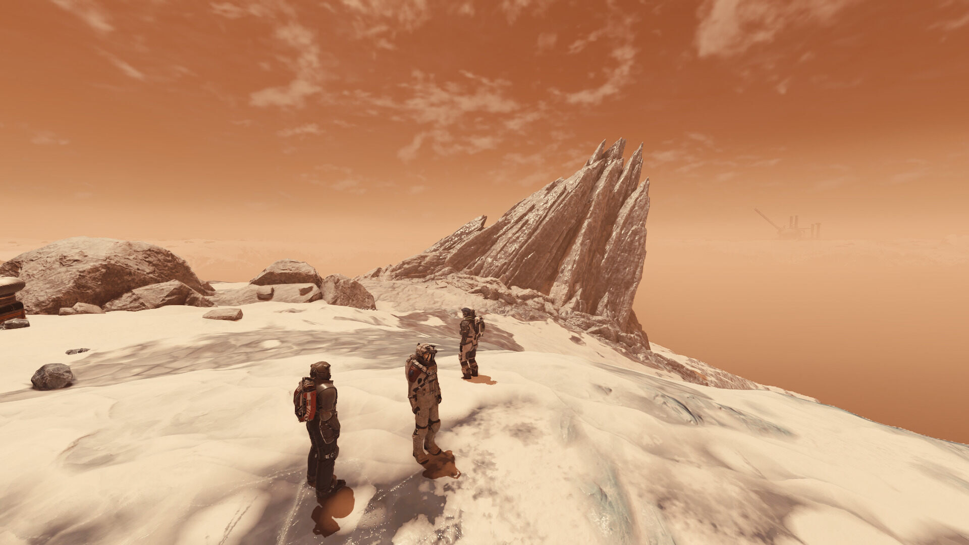 Además de la fauna y flora local, cada planeta puede contener estructuras como edificios, laboratorios abandonados o incluso cuevas que harán las veces de las habituales “mazmorras”. Aparte de eso, en planetas con atmósfera habitable podremos construir nuestra propia base a la que podremos añadir módulos de vivienda, estaciones de desarrollo o sistemas de defensa para poder crear nuestra guarida perfecta. Para ello necesitaremos obtener recursos en los diferentes planetas que nos permitan construir los elementos en cuestión. En esta versión del juego, la exploración planetaria se amplía con opciones de desplazamiento más completas, pudiendo movernos tanto a pie como mediante vehículos terrestres tipo rover, lo que agiliza notablemente los trayectos entre puntos de interés.