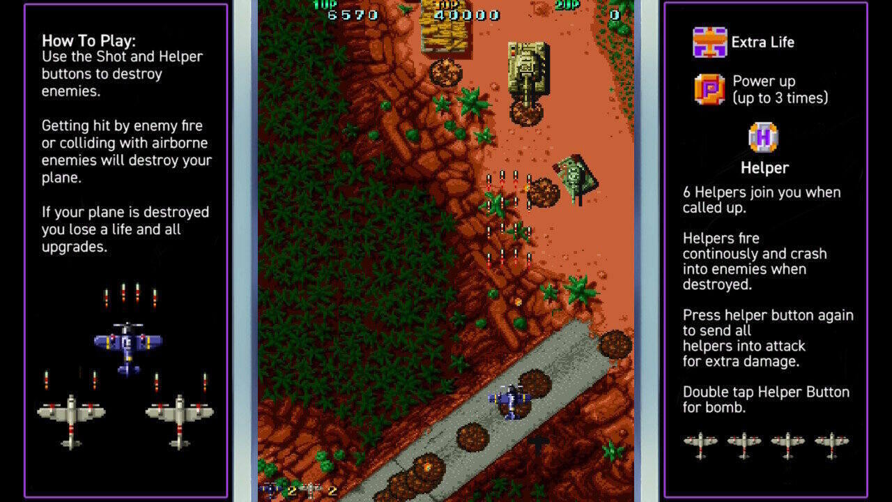 Por último, cerramos con Twin Hawk (1989), un título ambientado en una Segunda Guerra Mundial alternativa donde pilotamos una aeronave enfrentándonos a oleadas de enemigos masivos. Es un shooter vertical con una ambientación distinta a la habitual de Toaplan, más “bélica” y con un tono que lo hace destacar dentro del recopilatorio. Lo curioso aquí es su sistema de apoyo, podemos invocar formaciones aliadas que nos ayudan durante el combate, lo que introduce un componente táctico poco habitual en el género. Es un cierre redondo para el volumen, con un estilo propio que, sin alejarse del ADN Toaplan, amplía su repertorio de ideas.
