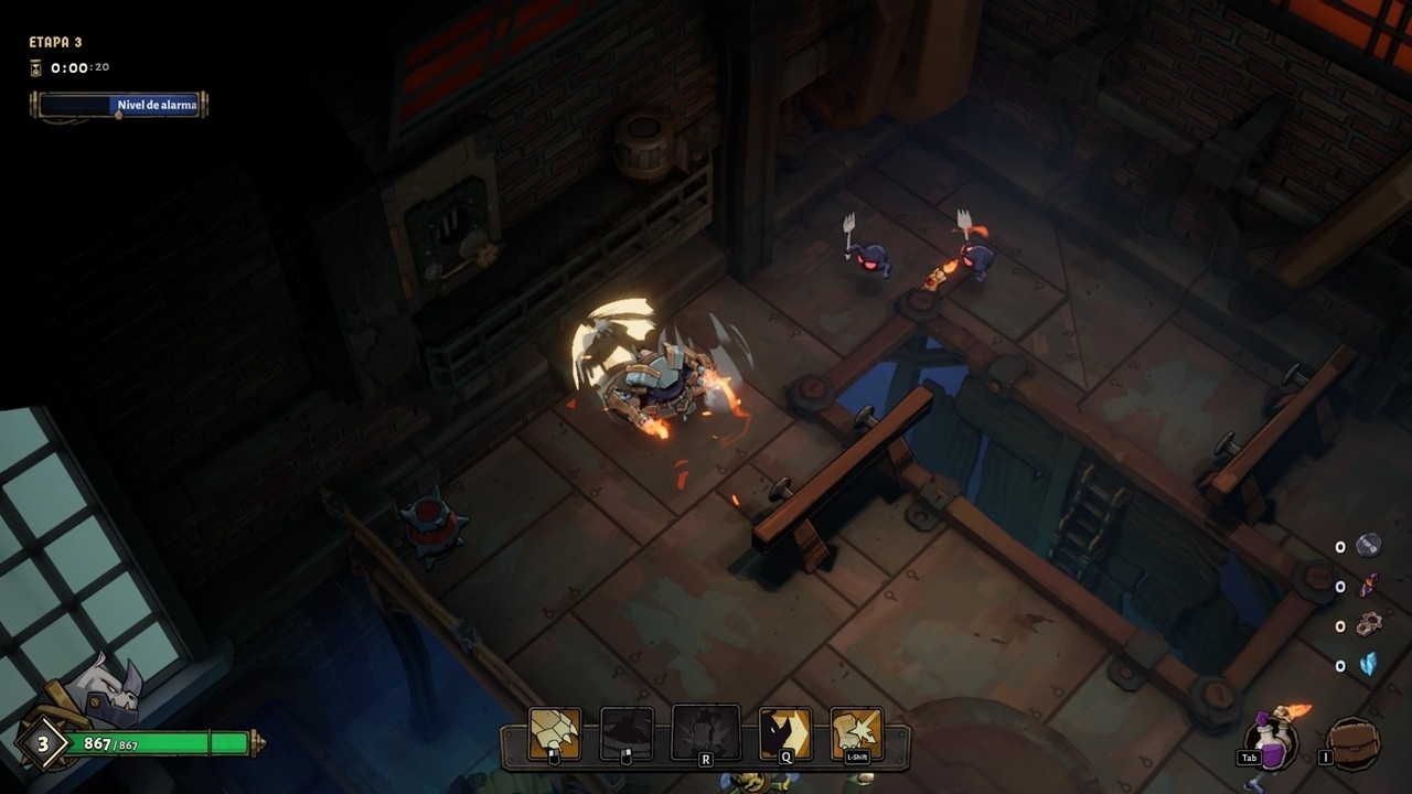 Además, los escenarios son extremadamente pequeños. En solitario esto no supone un gran problema, ya que los enemigos no cambian de objetivo constantemente, pero en partidas multijugador de hasta tres jugadores el espacio se queda corto, los personajes se estorban entre sí y las salas terminan saturadas de enemigos. Hay alguna que otra trampa, pero su utilidad es bastante limitada.